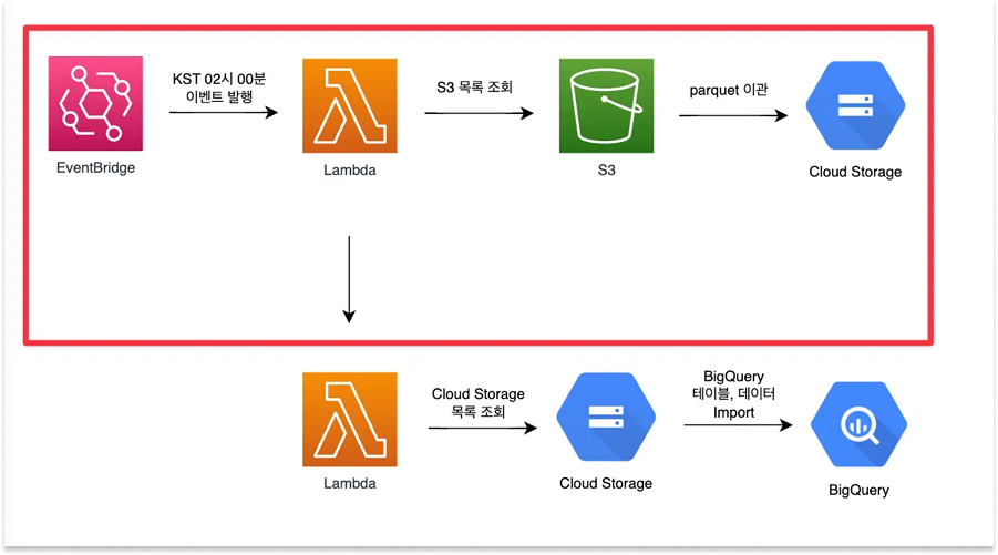 Step 3: 약 2~30분 정도 진행되는 step2 과정이 마무리되면 KST 기준 02시에 S3에 적재된 데이터를 GCS(Google Cloud Storage)로 전송합니다.