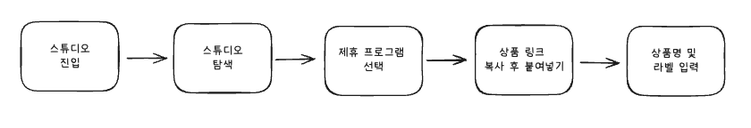 기존 유저가 제휴 링크를 생성하려면 스튜디오 페이지에 진입해 위의 단계를 거쳐야 했습니다. 이 복잡한 UX 때문에 사용자가 불편할 수 있다고 판단하여 크롬 익스텐션을 통해 불편한 UX를 개선하고 싶었습니다.