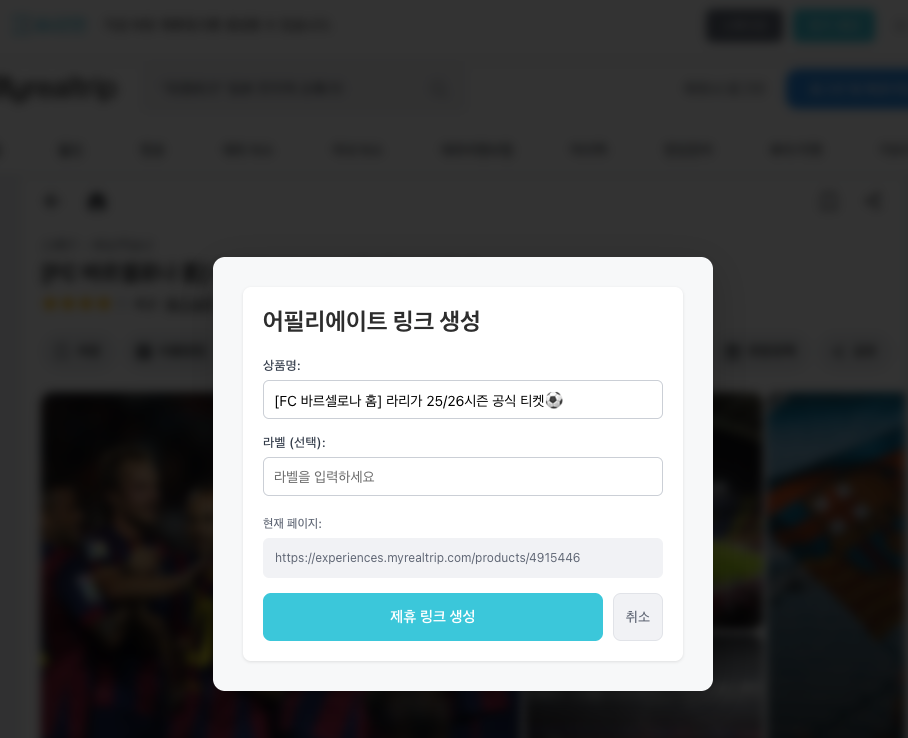 한 번의 클릭으로 로그인을 연동하고 이미 제휴링크를 생성한 상품이라면, 이미 제휴링크가 생성된 상품이라고 정보를 노출시켰습니다.
