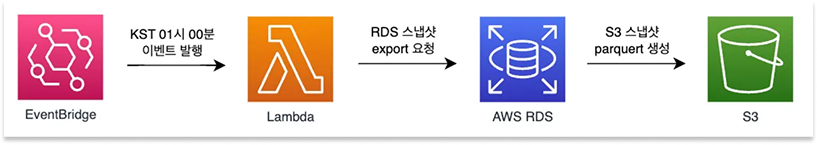 Step 2: 일별로 새로운 데이터를 BigQuery에 옮기기 위해 KST 기준 01시에 생성된 스냅샷 정보를 Parquet 포맷으로 생성하여 S3 버킷에 Export 합니다.