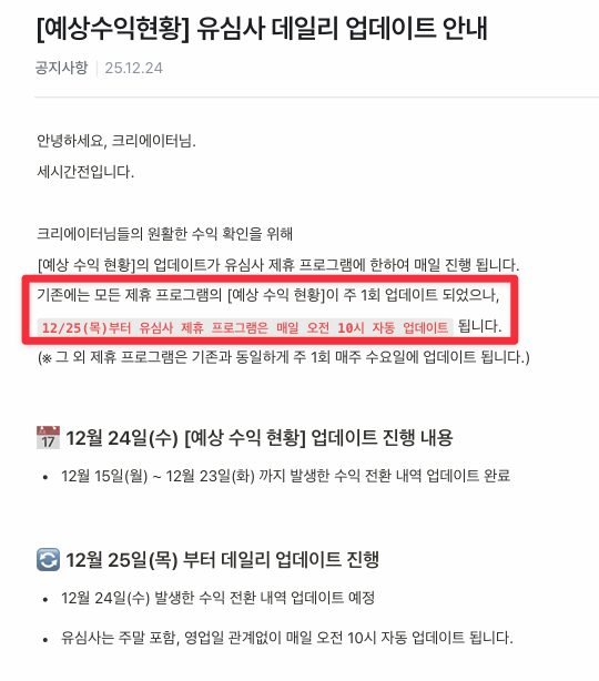 마지막으로 기존 수익 업데이트 시간을 약 20배 이상 향상함과 동시에, 매주 수요일에만 확인할 수 있던 수익 현황을 특정 제휴사를 시작으로 데일리로 업데이트함으로써 유저들에게 빠르게 수익 발생 여부를 확인할 수 있는 환경을 구축했습니다.